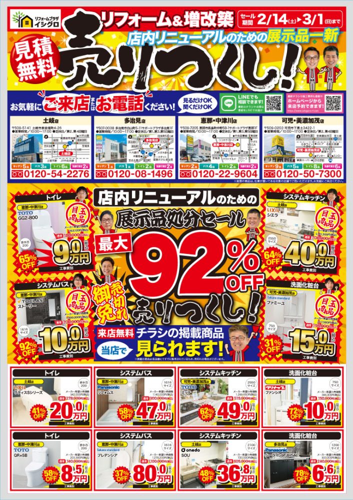 店内リニューアルのため展示品売り尽くし!【土岐店、多治見店、恵那・中津川店、可児・美濃加茂店】