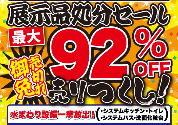 店内リニューアルのため 展示品売り尽くしセール開催! 土岐店、多治見店、恵那・中津川店、可児・美濃加茂店の4店舗で開催! システ...